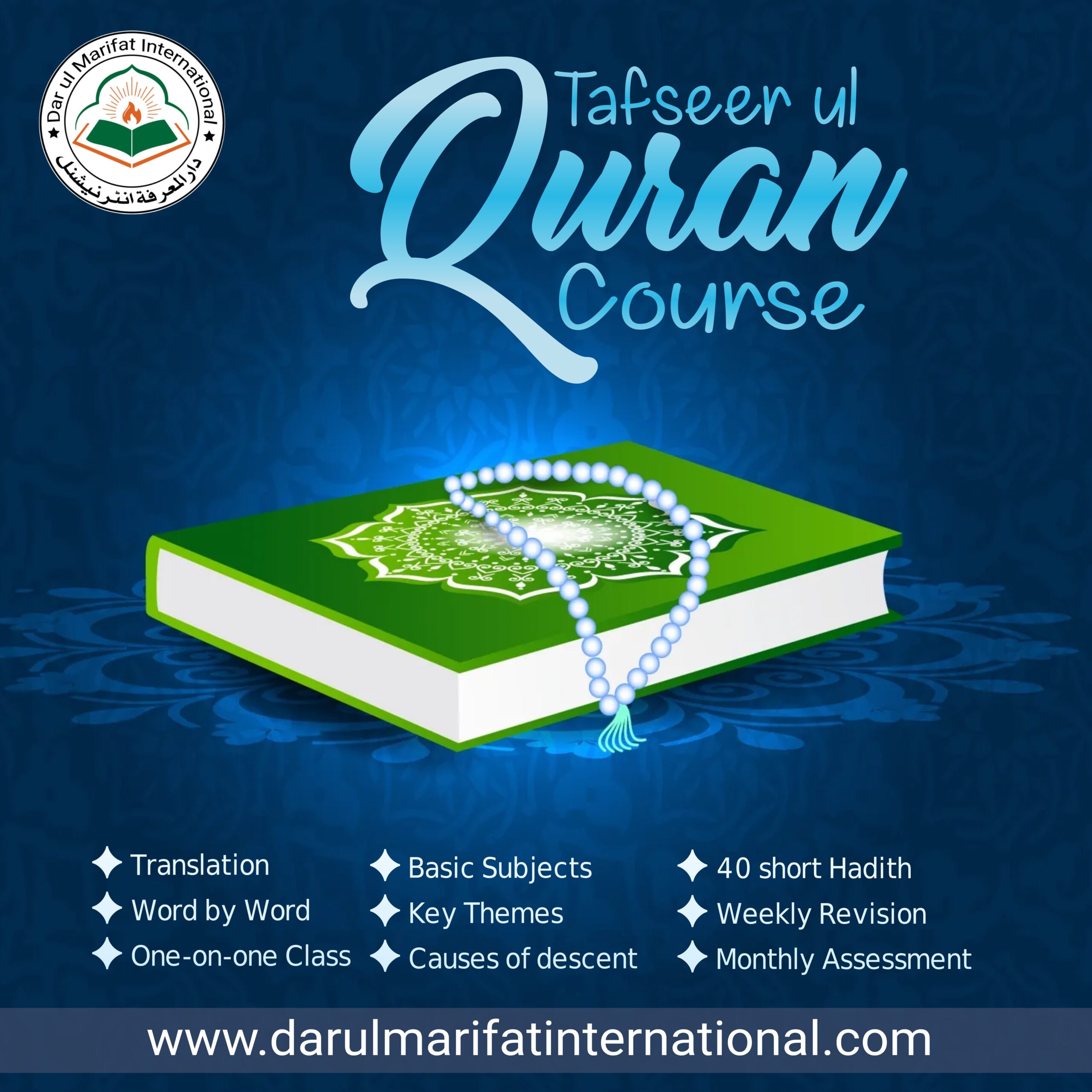 This course provides a deep explanation of the Quran with authentic Tafseer. It helps learners understand the context, meanings and wisdom of the verses to apply them in daily life.