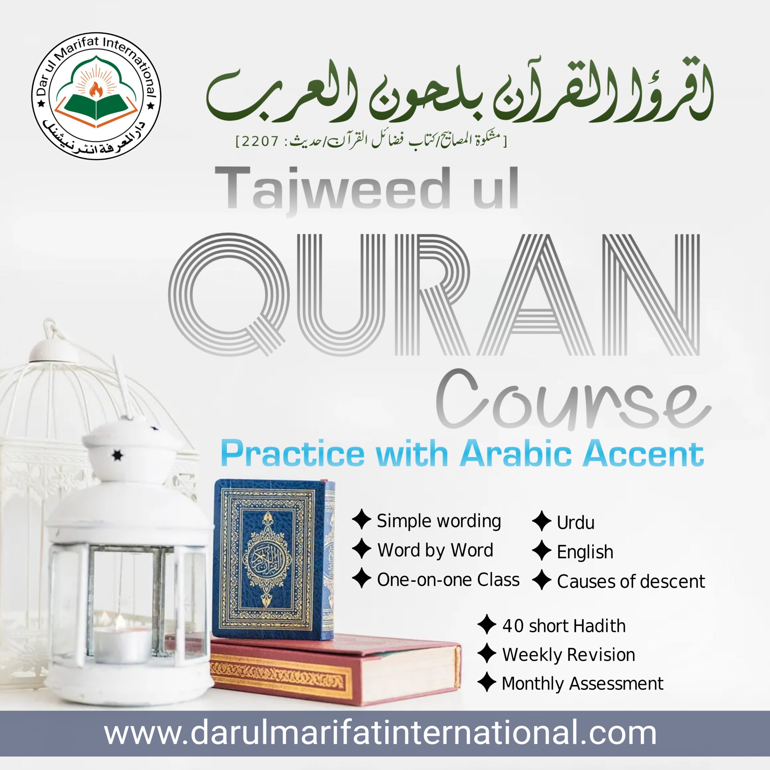 This course not only focuses on regular recitation but also teaches how to apply Quranic guidance in daily life. Students learn to connect the teachings of the Quran with their character, decisions and actions, making the Quran living guide.